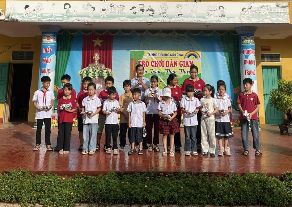 Thực hiện kế hoạch tuần 6 nhằm tăng cường các hoạt động giáo dục kỹ năng sống và bảo tồn văn hóa truyền thống, Trường Tiểu học Giao Châu đã tổ chức thành công buổi sinh hoạt ngoại khóa với chủ đề “Trò chơi dân gian – An toàn – Thân thiện”. Hoạt động đã diễn ra trong không khí sôi nổi, hứng khởi tại sân trường, thu hút đông đảo học sinh tham gia. Trên sân khấu được trang trí đẹp mắt, có sự xuất hiện của các thầy cô giáo và các bạn học sinh khối 5, đại diện trình bày và hướng dẫn các trò chơi dân gian tiêu biểu như “Rồng rắn lên mây”, “Bịt mắt bắt dê” hay “Chi chi chành chành” … Các trò chơi không chỉ mang tính giải trí cao, giúp các em vận động thể chất, rèn luyện sự khéo léo, nhanh nhẹn mà còn truyền tải các bài học về tinh thần đồng đội, sự đoàn kết và tư duy logic. Thầy giáo Hiệu trưởng Phạm Văn Hậu đã nhấn mạnh ý nghĩa của việc phát triển các trò chơi dân gian thân thiện trong môi trường học đường, góp phần giảm thiểu nguy cơ mất an toàn, đồng thời làm cho mỗi ngày đến trường của các em thêm niềm vui và ý nghĩa, đúng với tiêu chí “An toàn – Thân thiện” mà nhà trường đề ra. Buổi giao lưu đã kết thúc tốt đẹp, để lại nhiều ấn tượng và những kỷ niệm đẹp về tuổi thơ cho các em học sinh.