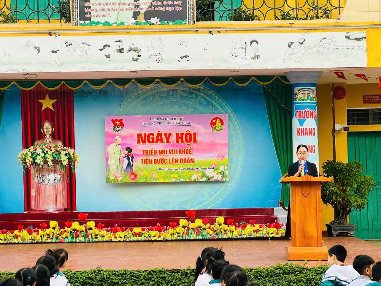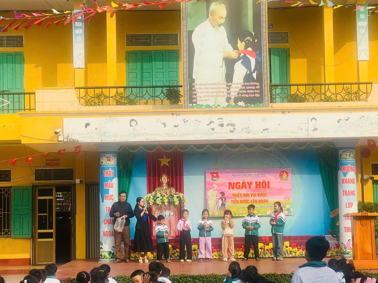 Trong không khí sôi nổi của tháng Thanh niên, sáng ngày 09/03/2026, Trường Tiểu học Giao Châu đã long trọng tổ chức Ngày hội “Thiếu nhi vui khỏe – Tiến bước lên đoàn”. Đây là hoạt động ý nghĩa nhằm giáo dục truyền thống, tạo sân chơi lành mạnh cho các em học sinh, đồng thời hướng tới sự kiện chính trị trọng đại của đất nước.