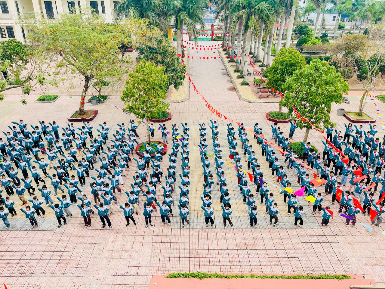 Hòa mình vào không khí sôi nổi của tháng Thanh niên, Trường Tiểu học Giao Châu đã tổ chức màn đồng diễn thể dục giữa giờ trên nền nhạc sôi động. Sự đồng đều, khỏe khoắn trong từng động tác của các em học sinh không chỉ thể hiện tinh thần “Vui khỏe” để học tập tốt, rèn luyện chăm, mà còn khẳng định sự chuẩn bị kỹ lưỡng và tinh thần tập thể cao độ của toàn thể học sinh.