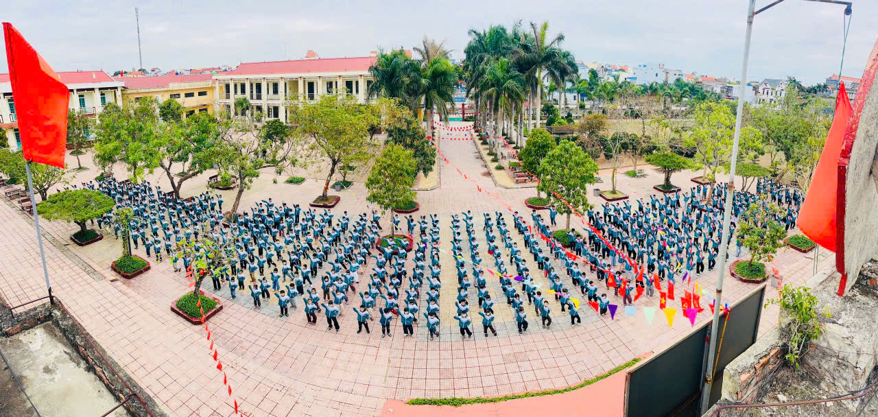 Sau khi kết thúc phần Chào cờ, các thầy cô giáo và học sinh trong đội ngũ đoàn thanh niên đã có thời gian để ổn định tổ chức và chuẩn bị cho những hoạt động sôi động sắp tới. Đây là khoảnh khắc ý nghĩa khi toàn thể thầy và trò cùng nhau tạo nên sự đoàn kết trước một sự kiện quan trọng.